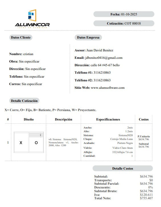«Con Alum pasamos de dedicar 40 horas a un despiece a solo 5 minutos. El optimizador de cortes nos ordena cada perfil y redujo errores; entre desperdicios y despieces mal hechos hemos ahorrado cerca de $10.000.000 COP. Hoy los planos de taller salen listos y precisos».