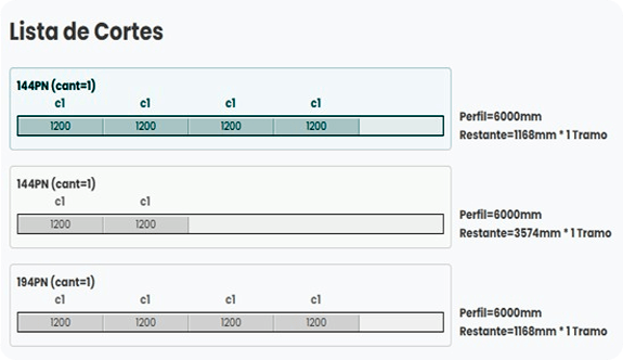 Distribuye cada corte en perfiles de 6 m para minimizar desperdicio y evitar errores de operario.